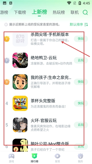 3、进入排行榜的“上新榜”页面后,找到并选定目标游戏(例如“杀戮尖塔-手机新版本”),随后进入该游戏的详情页面。