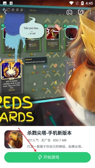 4、进入“杀戮尖塔-手机新版本”的详情页面后,点击【开始游戏】按钮,就能进入游戏的游玩界面了。