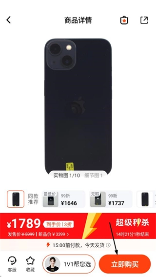 4、在商品详情页,点击“立即购买”按钮,即可完成手机的购买流程。