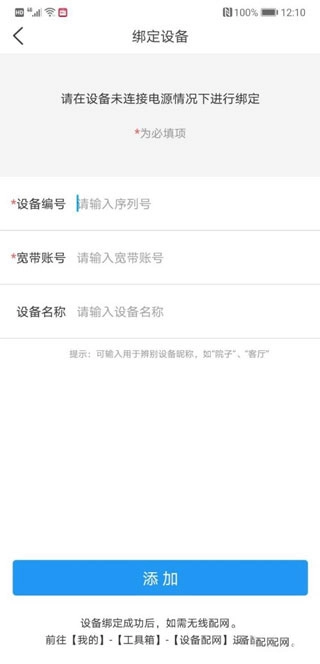 4、接着输入摄像头的序列号、宽带账号与设备名称,完成输入后点击添加按钮即可。