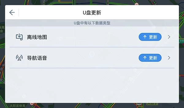 步骤三:车机将自动识别您U盘中的数据,您可根据需要选择需要更新的数据。