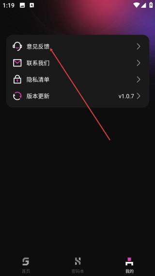 2、进入我的页面后,找到【意见反馈】选项并点击,即可进入反馈专属页面。