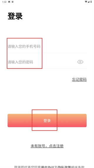 2、进入登录页后,填写【请输入您的手机号码】与【请输入您的密码】,点击【登录】完成账号验证。