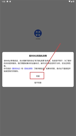 1、在【服务协议和隐私政策】,阅读条款后点击【同意】按钮,开启服务使用流程。
