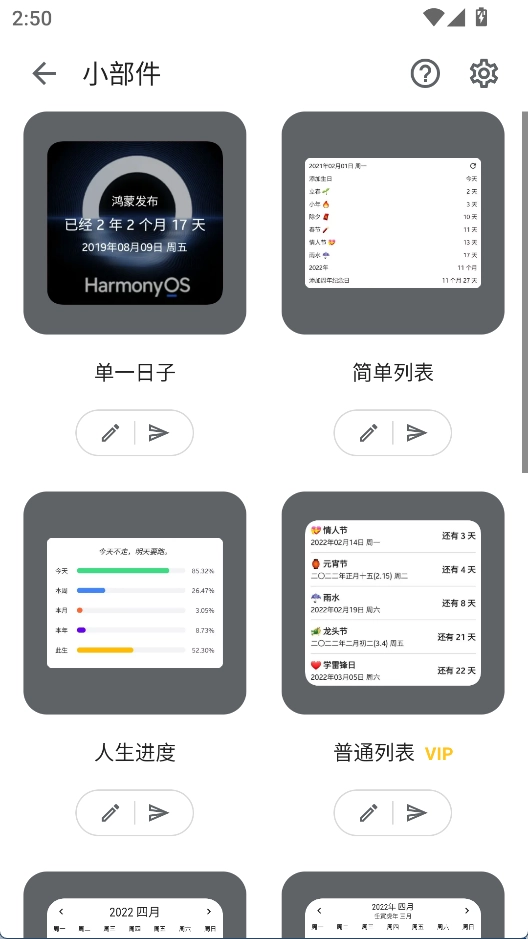 2、桌面小部件支持:我们提供了多种尺寸与样式的桌面微件,用户无需打开应用,就能随时查看重要日子。