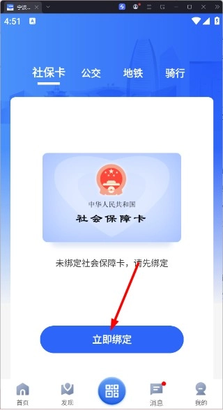 2、在社保卡服务页面,点击【立即绑定】按钮,进入绑定社保卡的信息填写页面。