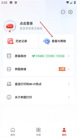 2、在个人中心页面,找到并点击【客服与帮助】选项。