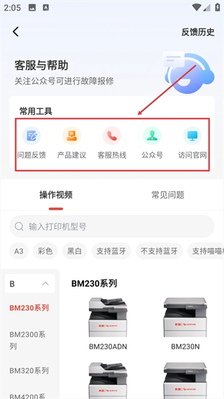 3、在客服与帮助界面中,你可以借助常用工具里的【问题反馈】【客服热线】等功能来获取服务支持。