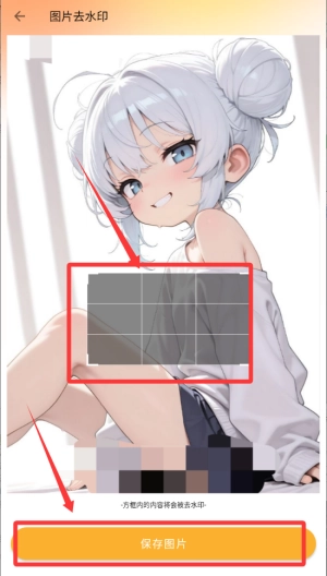 4、将下方的方格拖动至水印所在位置,点击保存图片就能完成去水印操作。