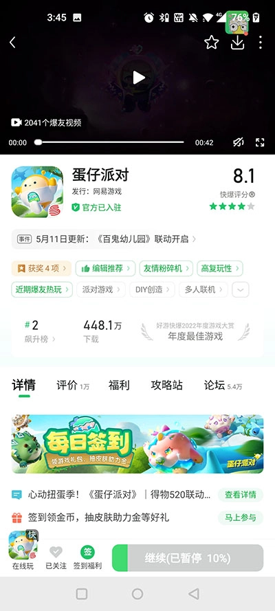1、首先在当快站好好游快爆,进入到首页我们这边以蛋仔派对为例子。