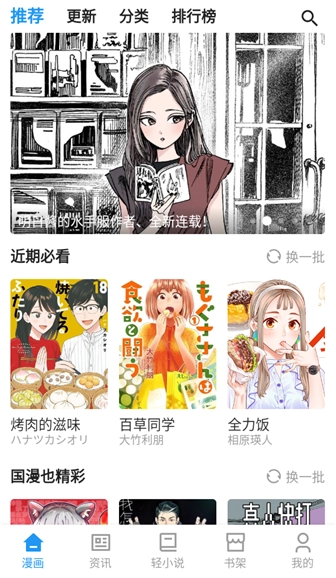 再漫画是一个汇聚了海量漫画资源的追漫平台,平台对收录的漫画做了细致的分类整理,无论你偏好少女漫、少年漫,还是青年漫、国漫,都能在这里便捷地找到心仪的内容。它简洁的界面设计和清晰划分的功能板块也是一大特色,软件整体观感舒适,使用体验十分流畅,阅读漫画时的顺滑感让人爱不释手,是一款相当实用的漫画阅读工具。