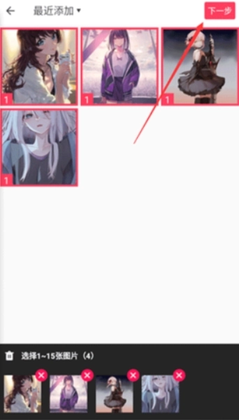 2、选择【模板拼图】选项,选中要进行拼图的图片,然后点击【下一步】按钮