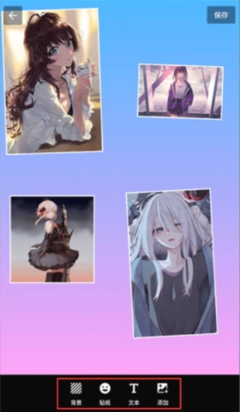 4、支持背景更换、贴纸添加、文本添加