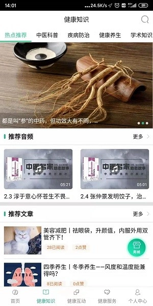 电子书库汇聚海量中医典籍,支持离线阅读与笔记记录功能;专业问答板块由执业医师团队负责维护,为用户解答常见健康疑问;音视频课程涵盖针灸推拿等实操教学内容,支持倍速播放与学习进度保存;健康社区允许用户分享图文动态,还能创建个性化的养生话题;商城精心挑选道地药材与养生器械,所有商品都经过专业质量检测;在线预约系统可支持远程问诊服务,提供电子处方以及用药指导。