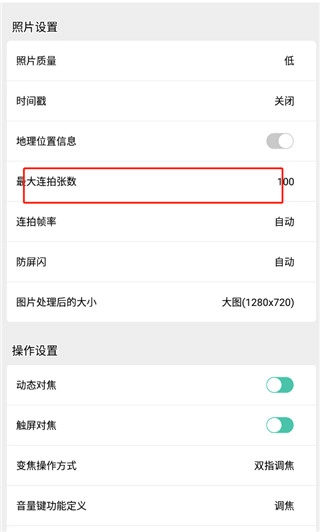 3、接着点击【最大连拍张数】。