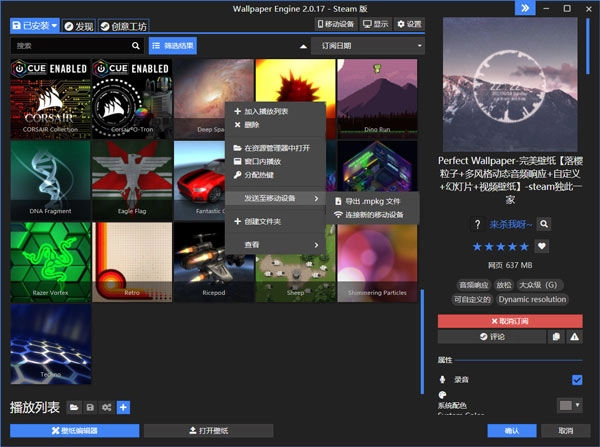 PS:若您无法连接到Android设备,可右键点击任意壁纸,选择“发送到移动设备”,再选择导出.mpkg格式文件。之后,您就能通过数据线或其他传输方式,将导出的移动包文件传至您的移动设备中。