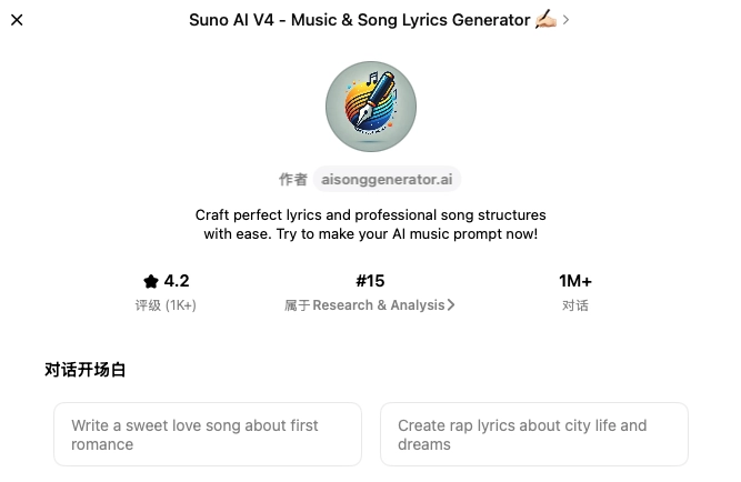你可以借助专门针对Suno优化的GPTS(在ChatGPT里搜索“Suno”即可找到),或者通过一些Suno提示词生成网站来辅助创作提示词,比如这个网站:https://sunoprompt.com/zh