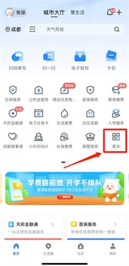 打开“天府市民云”,点击“更多”