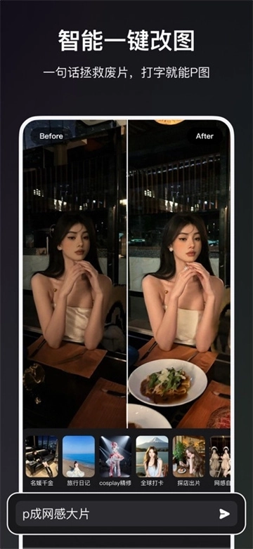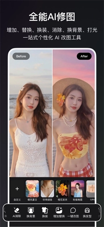 【功能强大 全面细致】功能强大且全面,无需频繁切换操作。一站式即可满足所有修图改图需求,更有丰富创意玩法等待你去探索。