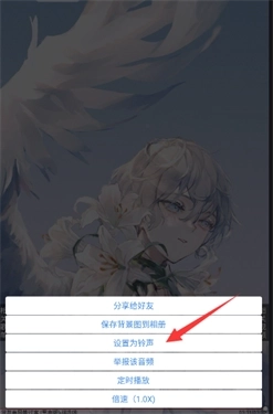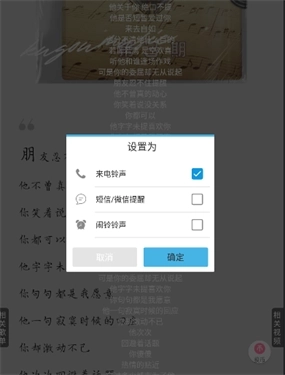 2、在弹出的窗口里,找到【设为铃声】这个选项,点击它完成设置。