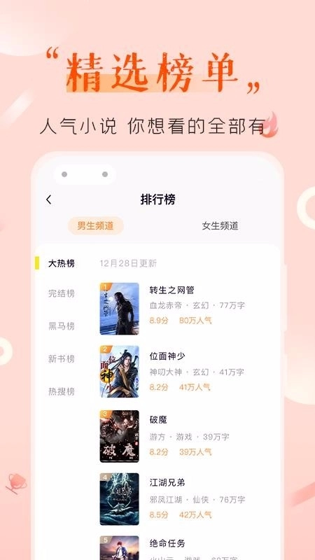 歪歪免费小说最新版本包含了各式各样的榜单,既有热门的,也有完结的,还有冷门的。