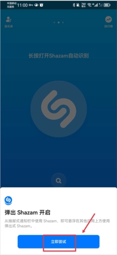 开启后返回,会弹出Shazam开启的提示,点击“立即尝试”即可。