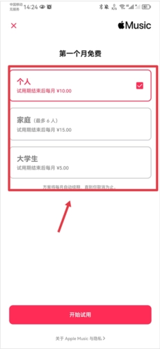 接下来选择你想领取的套餐,共有个人、家庭、大学生三类可选,选定后完成登录或注册操作,就能获得一个月的会员权益。