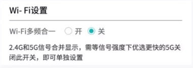 如果您的路由器同时具备2.4GHz和5GHz频段的WiFi功能,并且当前仅显示一个WiFi名称,建议您关闭路由器的“双频合一”设置。之后重新连接时,请选择名称中不含“5G”标识的WiFi网络。