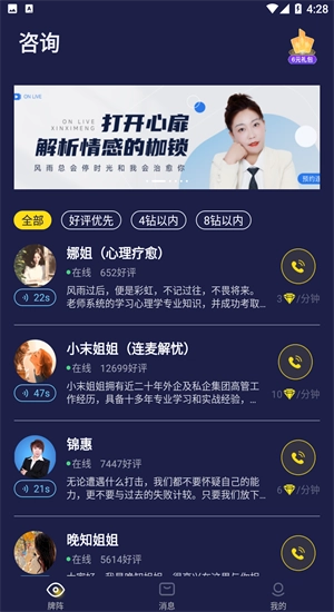 为用户和塔罗师搭建了多元化的互动桥梁,既支持语音消息的传递,也能通过实时语音通话进行深度交流。