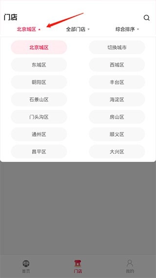 在门店这里可以选择好自己所在的城市。