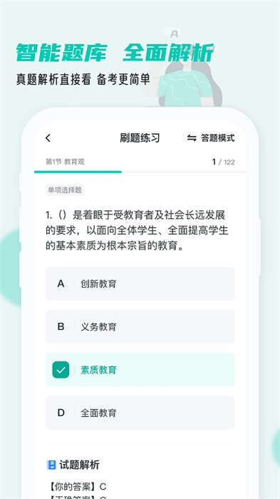 考教资小牛题库软件是一款十分实用的教师资格考试学习辅助工具,它整合了来自全国各地的教资考试真题与模拟试题,包含了多种不同类型的题目,覆盖了各学科的核心知识点。无论是初次备考教资的新手,还是需要针对薄弱环节进行强化复习的考生,这款软件都能很好地满足大家的学习需求。软件里的每一道题目都配备了详尽的解析内容,其中不仅有清晰的解题思路,还有关键知识点的详细阐释以及准确的答案解析等,这些内容能够帮助使用者更深入地把握题目的考查重点和解题技巧,进而有效提升解题能力。除此之外,软件还具备个性化学习的功能,能够依据用户的学习进度和具体需求,智能推荐合适的练习题和学习资料,助力用户制定出更具科学性和高效性的备考方案。