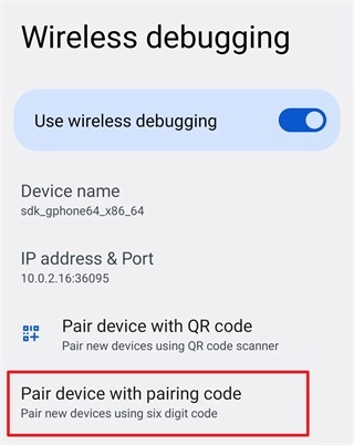 点按“无线调试”中的“使用配对码配对设备”