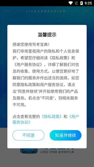 安装本站提供的驾考宝典,打开软件后需要同意用户协议。