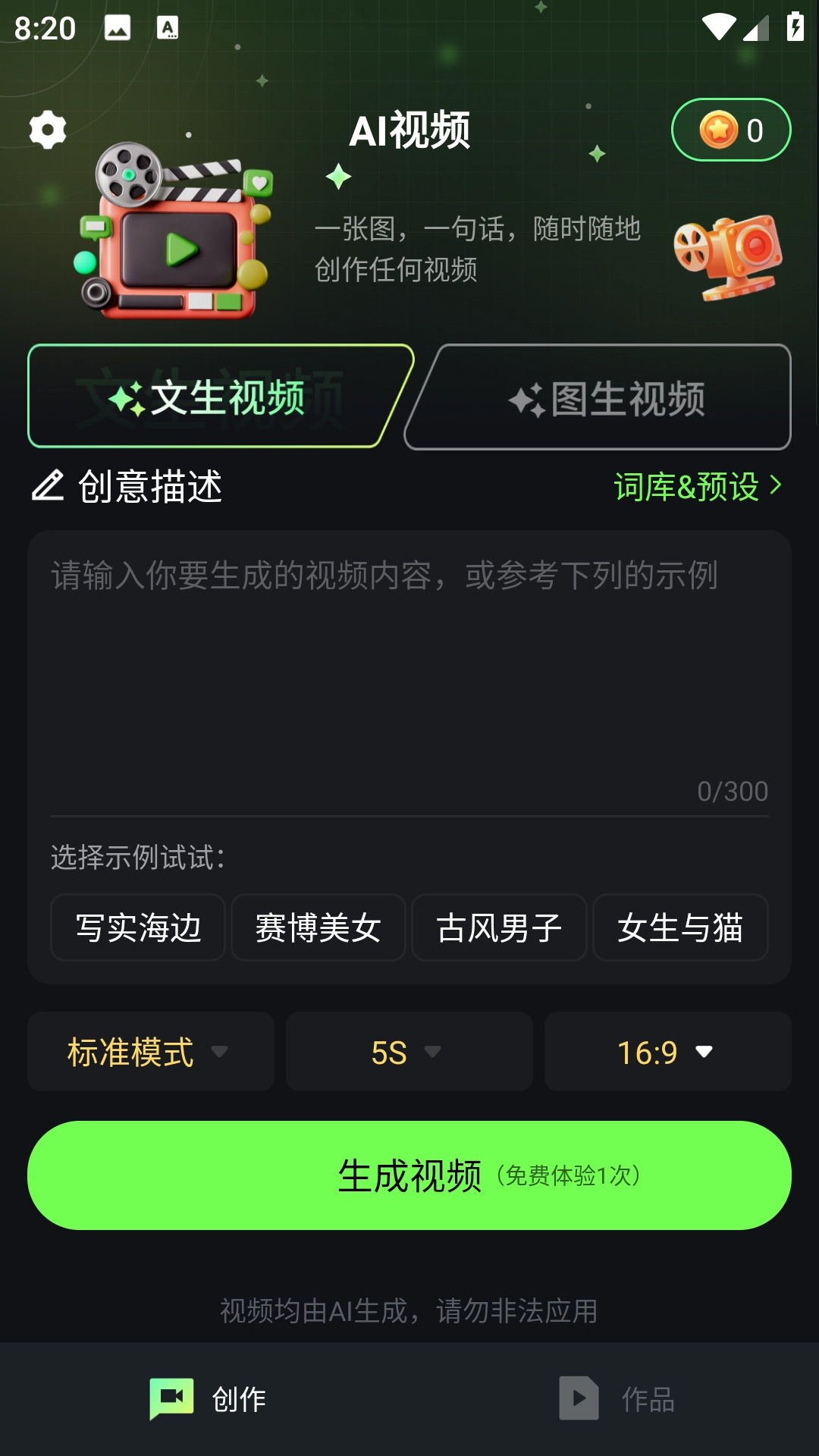 在首页输入你想要生成的视频内容,点击下方的“生成视频”按钮就可以了。