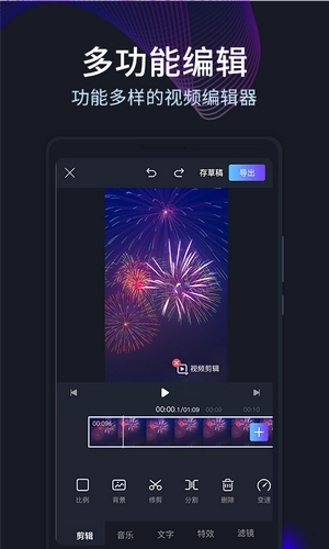 强大的剪辑功能,支持精准到0.1秒的随心剪切,剪辑与拼接操作更贴合您的需求