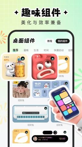 2、趣味组件不仅能美化桌面,还兼顾使用效率,用户可将实用组件添加到桌面,从而让操作更加便捷。