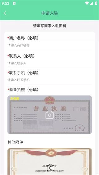 点击申请入驻,按照要求填写必填信息,再上传营业执照及相关附件。
