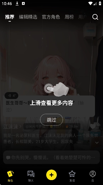 进入软件首页后,界面如图所示。在这里,系统会为用户推荐众多热门的AI角色,用户既可以挑选自己感兴趣的角色进行使用,也可以直接跳过该推荐环节。