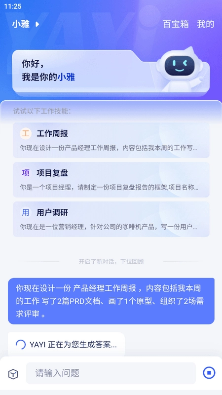 雅意是一款专业的大模型应用,用户通过它既能获取专业的问答服务,也能快速获取相关信息。目前雅意已接入AI大模型,广大用户都能享受到优质的AI服务,有需要的朋友现在就来体验吧!