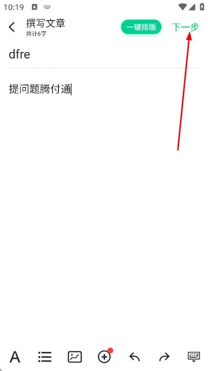 3、在输入文章内容之后,点击“下一步”按钮,即可进入发布设置页面。