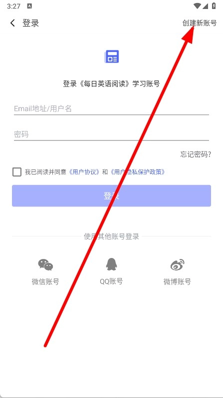 在登录页面,点击右上角创建新账号。
