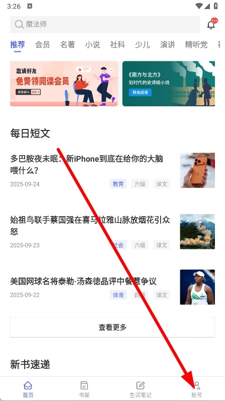 打开,点击底部导航栏中的账号。