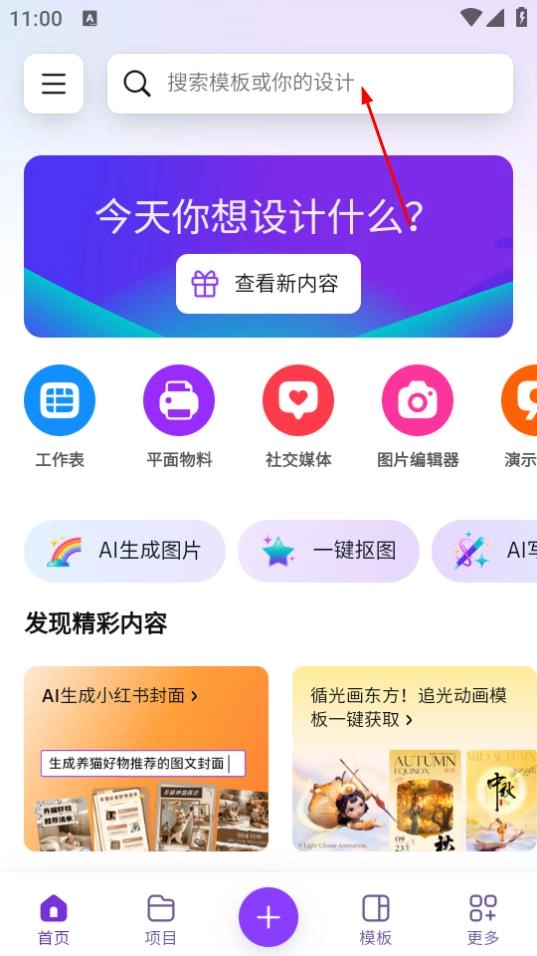 点击顶部的搜索模板或者你的设计搜索框,就能输入内容来进行搜索。