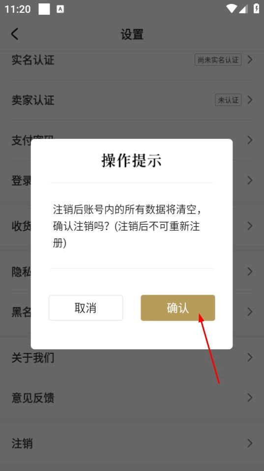 4、当弹出操作提示框后,点击确认按钮,就能完成账号注销操作。