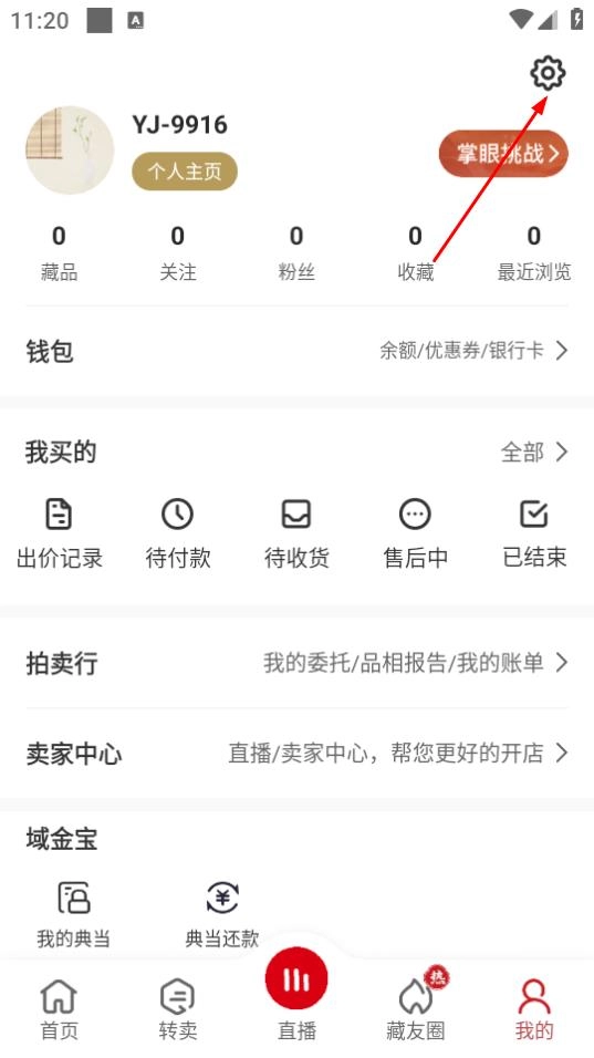 2、进入个人页面后,点击右上角的设置图标,即可进入设置界面。
