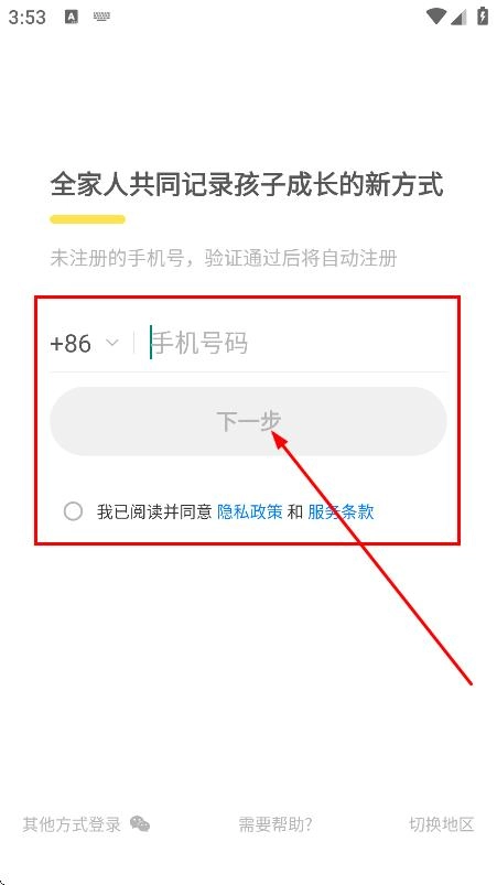 3、输入手机号码后,点击“下一步”按钮,即可进入验证码输入界面。