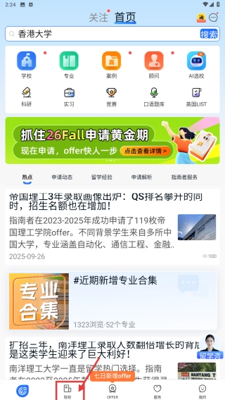 指南者留学是一款专门面向有出国留学规划的用户开发的专业服务软件,围绕留学全过程的需求,为用户提供全方位且实用的留学辅助。软件中详尽收录了国外大学的相关介绍,包含院校特色、热门专业、入学考试要求等关键信息,助力用户迅速掌握目标院校的状况;此外,还邀请每一届成功留学的学长学姐分享真实的学习经历。