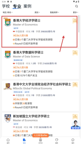 3、参考录取案例:可进入“录取案例”板块,查看与自身背景相近的用户申请案例,了解其申请策略、录取院校及专业,再结合自身实际情况调整申请计划,从而明确努力方向。