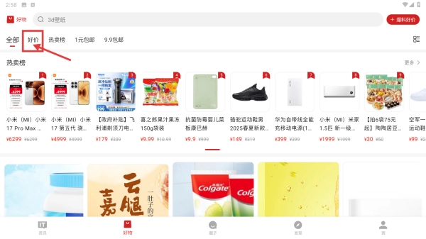 2、在好物页面,点击好价分类,浏览优惠商品列表。