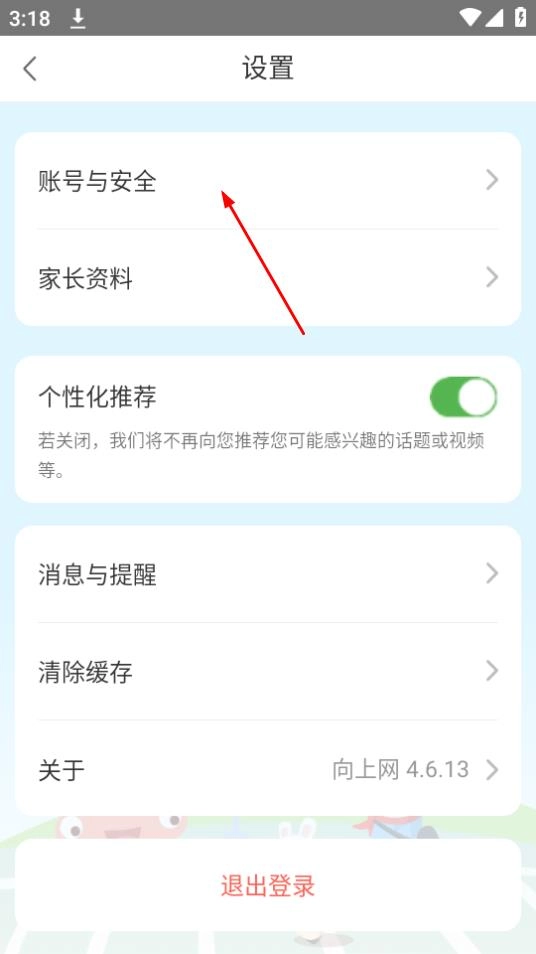 3、进入设置界面后,找到并点击“账号与安全”选项,即可进入账号安全相关设置页面。